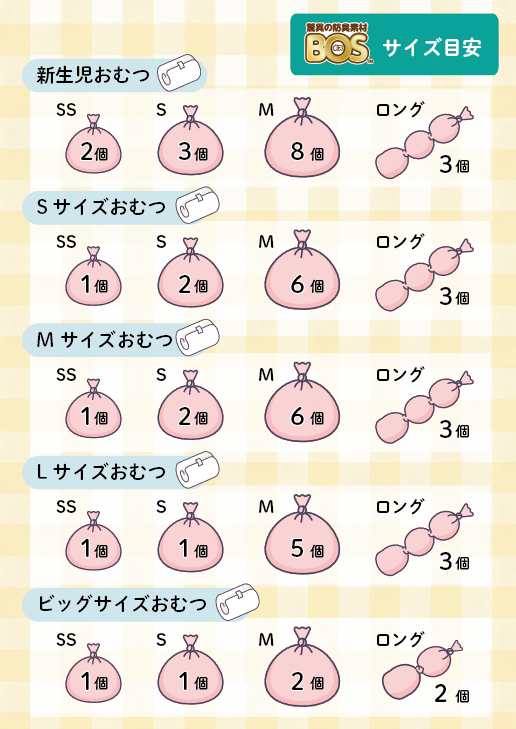今回は、おむつサイズごとにぴったりなBOSのサイズをご紹介します。